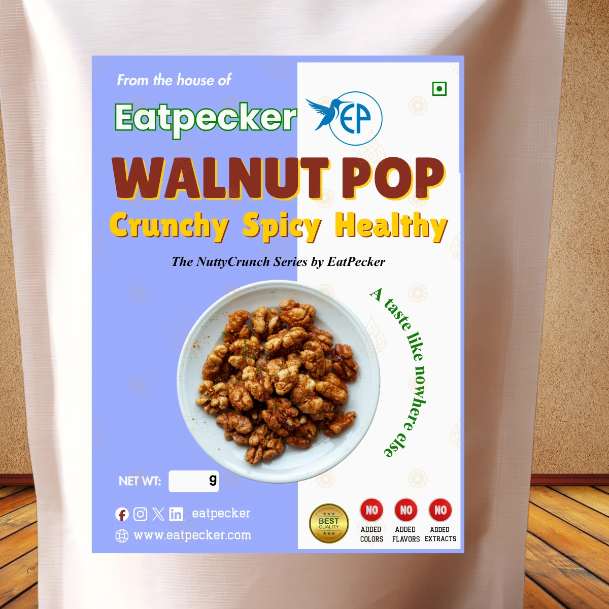 + Free ShippingCrunchy, roasted walnuts tossed in a bold blend of Indian spices with in-houuse masala. Walnut Pop delivers rich flavour, light heat and a satisfying crunch in every bite.